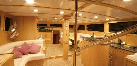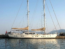 I was very pleased to have been invited by the British owners of “Spirit of the East” to provide design and consultancy services to this project. This fabulous 30.5m (100ft) LOA, 100 tonne, steel yacht was completed and launched at Aegean Yacht Services of Bodrum, Turkey in the spring of 2006. She has a beautifully smooth hull and a superb interior finish, as well as many innovative features. The yacht has been designed and built to the classification standards of RINA (Registro Italiano Navale) and the construction work carried out under their supervision. The yacht also has charter certification for Category 0 (unlimited) usage for 10-12 charter guests plus full crew. “Spirit of the East” has the ability to make fast passages under sail or power. The yacht has a long slim hull with a tight turn of the bilge to enhance the transverse stability and sail carrying power without requiring excessively deep draught. The keel and rudder are aerofoil sections for good efficiency and the rudder is a partially-balanced spade type providing good control and manoeuvrability. The propeller is a 4-bladed Varifold unit for optimum efficiency under power and low drag when under sail. The powerful ketch rig features high-tech sails and running rigging controlled by Harken hydraulic winches and headsail furling systems for ease of operation. With accommodation for up to 10-12 guests in suites, comfortable lounging cockpit areas, a luxury finish down below, stunning chestnut joinery and full air-conditioning, this yacht is proving to be very popular with charter guests. More information is available at www.spiritoftheeast.net . My contribution started with the design of the hull, rudder and keel to suit the original concept and preliminary general arrangement developed by the client. Then I was asked to design a sail plan and to assist with the deck plan and the accommodation layout, in addition to providing technical advice at all stages of the project. Particular emphasis was placed on the aesthetics of this yacht. Although the construction detailing was all carried out in the design office at the yard in Turkey, the naval architecture work including stability calculations, performance prediction, rig loading calculations and checking of the detailed mass estimates was carried out in the UK with design drawings and technical information transferred electronically between the two design offices.