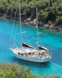 In her first year in commission (2009) Calypso sailed from Cowes to her cruising base at Kip Marina in Scotland, coping well with rough conditions in the Irish Sea and completing the passage at an average speed of around 8 knots. As hoped she demonstrates Spray’s inherent ability to maintain a course, yet turns well when required using the large aerofoil-section rudder. The modern ketch rig is versatile and easy to handle. The twin-wheeled cockpit is very effective. At sea she likes to power along in a good blow, but then exhibits little heel and an easy motion.