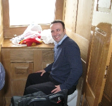 Back at Richmond after naming, the final elements were added to the decoration. The liferafts and the last pieces of the engineering and electrical fit-out were commissioned and tested. With advice from Neil of Motability and in the final run-up to the Diamond Jubilee Pageant an electric lift was installed so that the invited wheelchair users could enjoy the cabin.